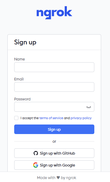 ngrok を使用するには、ngrok のアカウントを作成し、トークンを取得する必要があります。