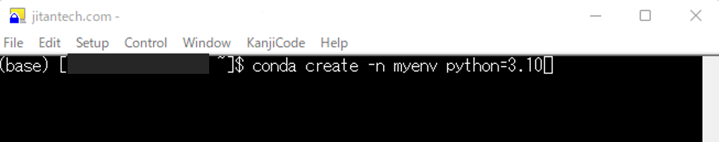 myenvという名前の仮想環境を作成し、Python3.10をインストールしています。