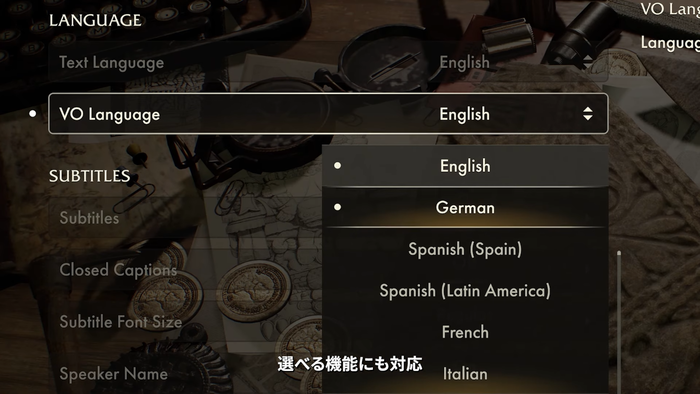「オリジナル言語である英語音声を母国語の字幕で楽しんだり、新たな組み合わせを試してみたり」という言及は、プレイヤーが自身の母語で物語を深く理解することを支援するだけでなく、異文化体験としてのゲームプレイを推奨している。例えば、普段は接することのない言語の音声を、自国の言語字幕で楽しむことは、キャラクターの演技のニュアンスを掴む上で新たな発見をもたらす可能性がある。これは、ゲームを単なるエンターテイメントとしてだけでなく、言語学習や異文化理解のツールとして捉える層にもアピールしうる。